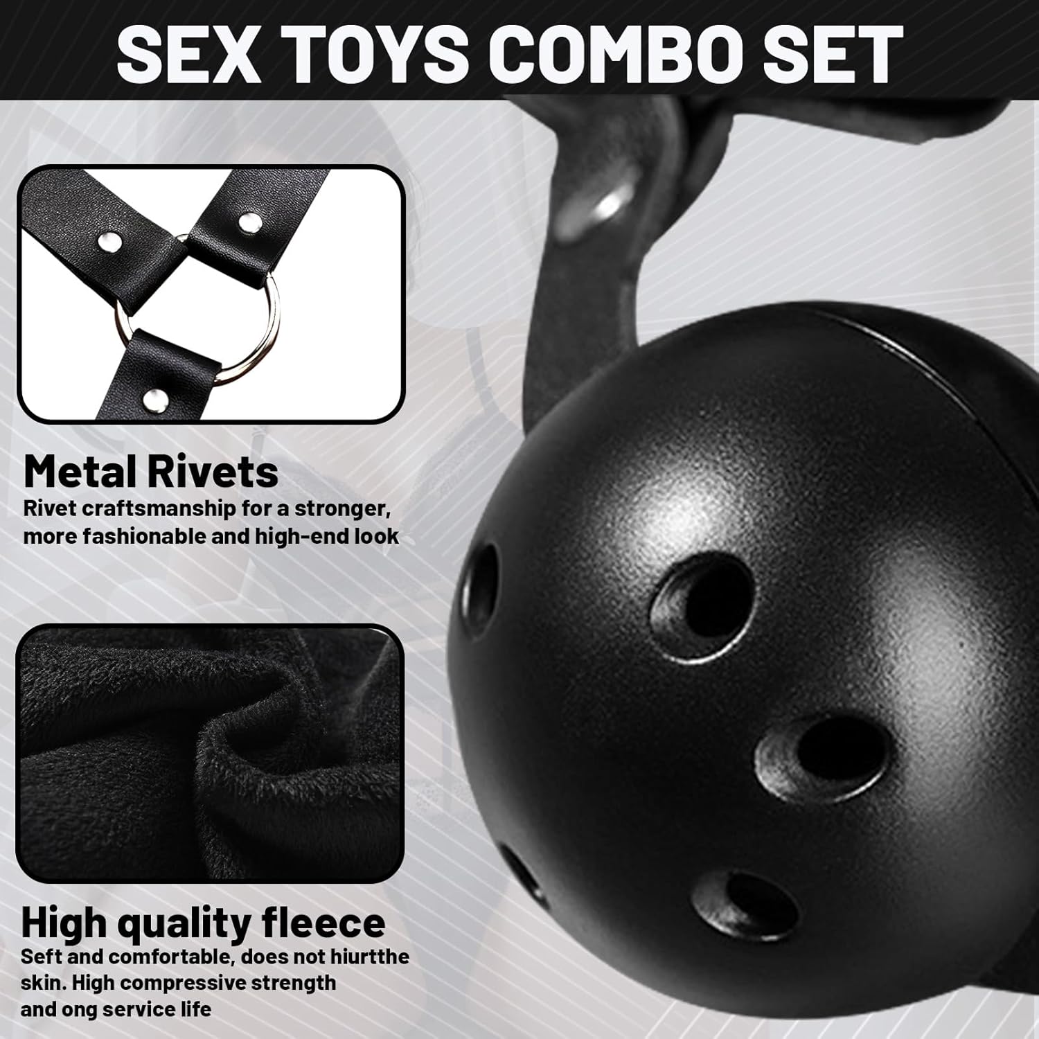 - Mouth Gag: Breathable ball gag with adjustable strap.