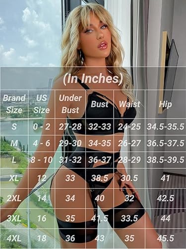 - Set Includes: Bra, panty, garter belt, and matching stockings (thigh-highs).