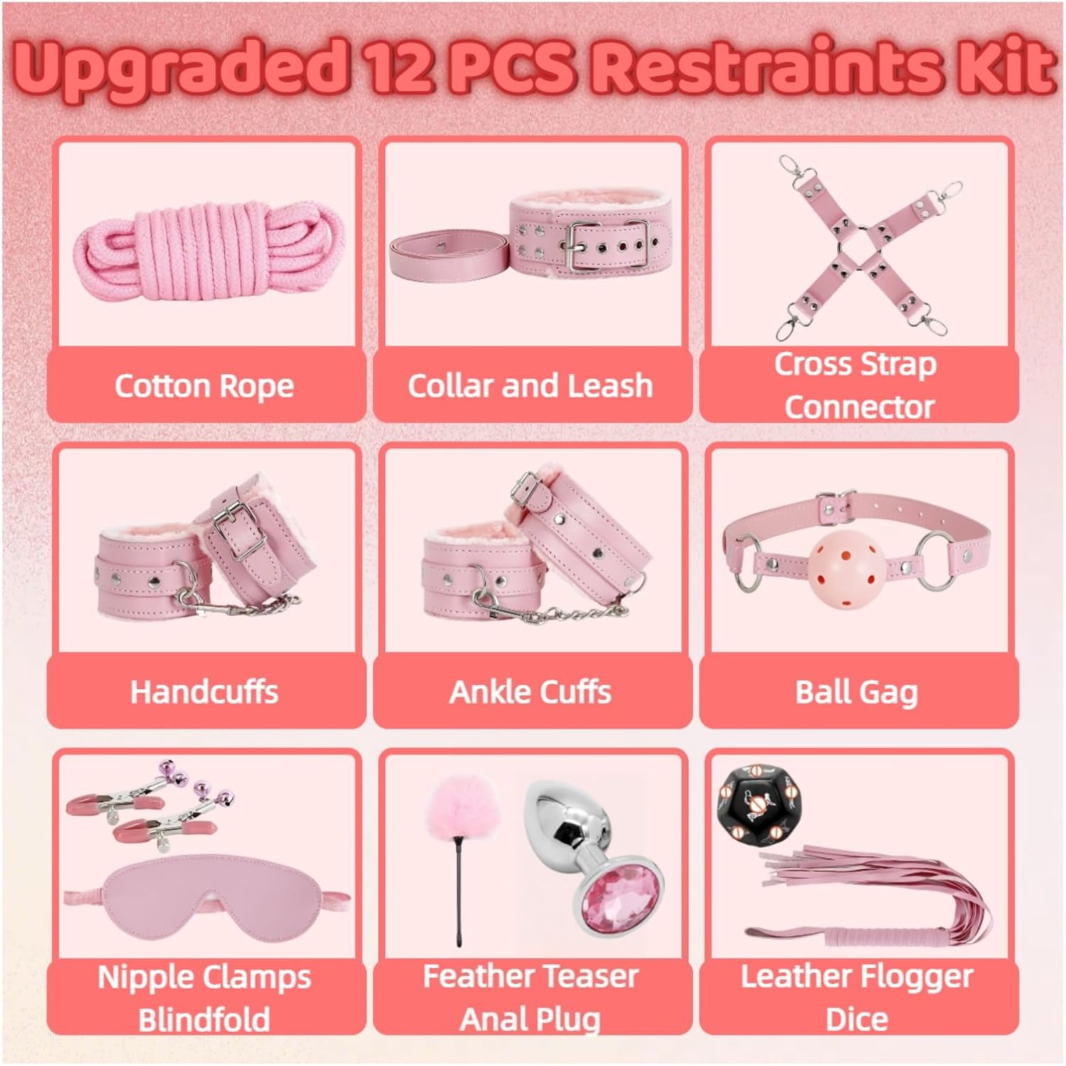 Pink 12-Piece BDSM Restraint Kit for Beginners In Pakistan | Daraztoy.pk